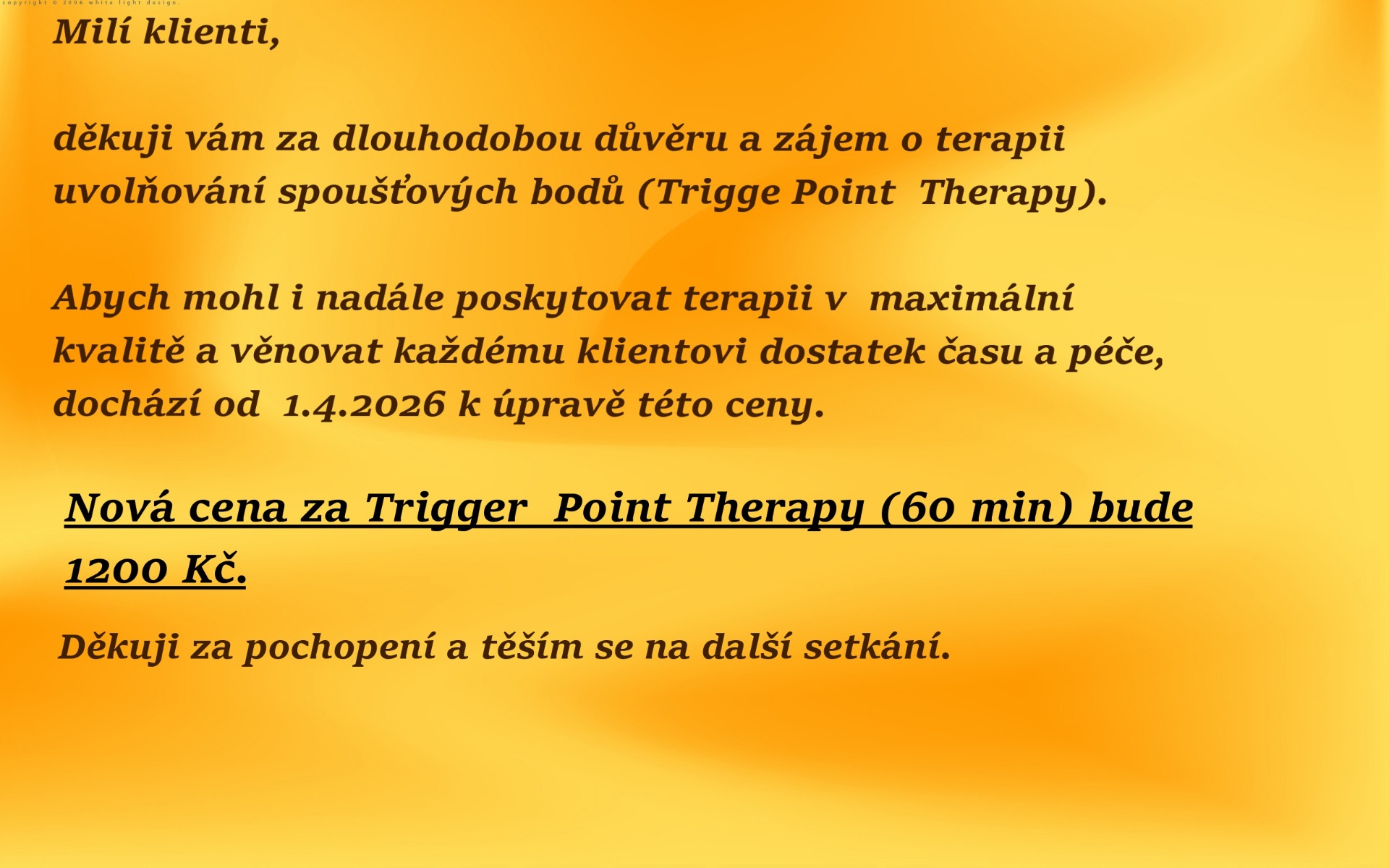 Vůbec jsem nevěděla, že masáž jako Trigger point existuje. A jsem neskutečně ráda a vděčná za to. Hodně mě trápily prsní svaly a mezižeberní. Doktoři to řešili pouze praškami na bolest. Neskutečná úleva přišla hned po masáži. Děkuji mnohokrát.